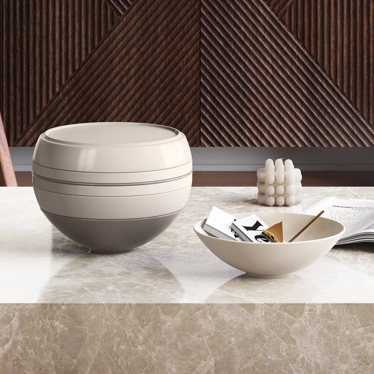 Criado pela primeira vez em 1971 pela designer Von Boch, o design do conjunto de itens La Boule foi revolucionário e muito à frente de seu tempo. Quase 50 anos depois, apresentamos uma versão atualizada de uma ideia inovadora Uma interpretação moderna de um conjunto exclusivo de louça de porcelana em forma de bola.